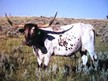 Wild colored black and white paint cow.She froze one horn and broke several inches off.Great producer.The mother of Saddlehorn and Panhandle Slim.