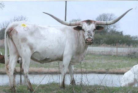 White with brown markings on face. This cow is no doubt our best producer. No matter what you put with her it works. Check out her heifer at side!