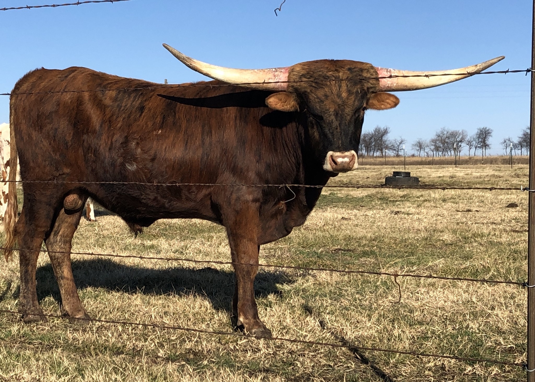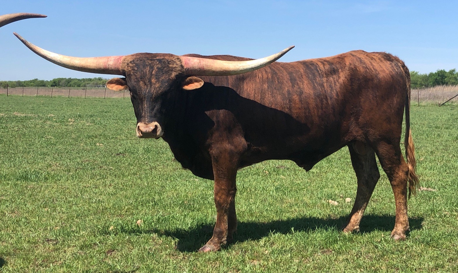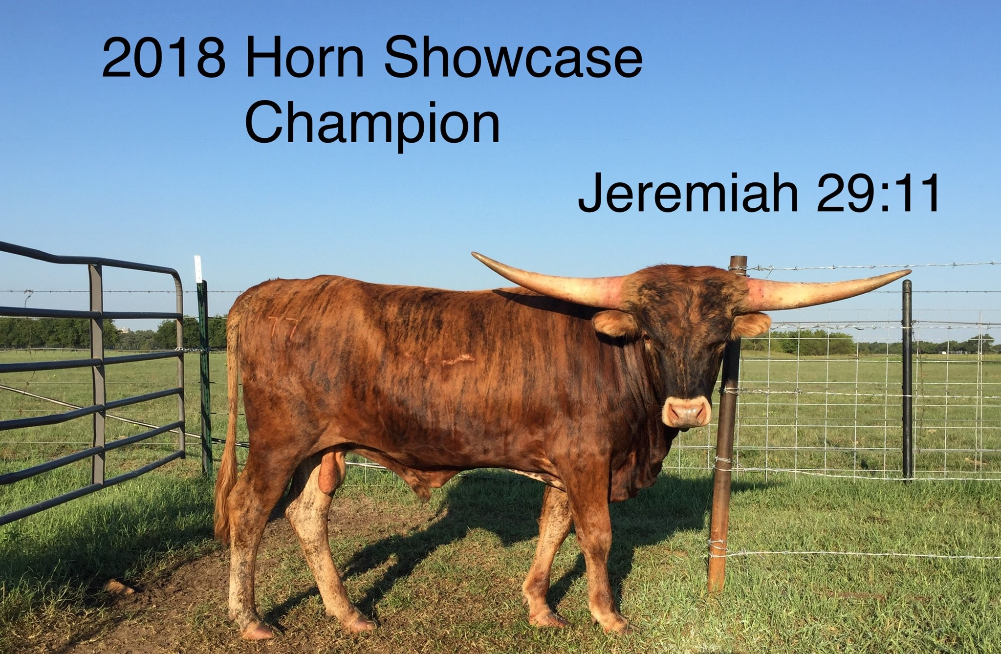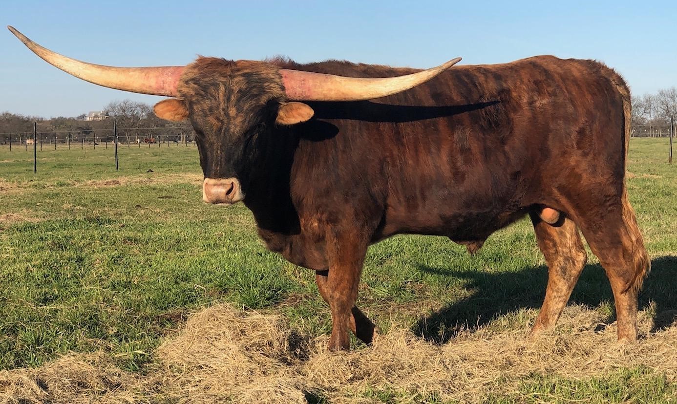 1/2 interest available. Stunning brindle bull weighing 1,980 pounds & measuring 92.25” TTT (03/26/2025). Awards include 2019 ITLA All Star Reserve Grand Champion, ITLA All Star Futurity Champion, 2018/2019 HSC Futurity Champion, and only bull in his class awarded Superior Bull Award in both the 2018 & 2019 HSC, 2019 Longhorn World Show Futurity Champion & 2018 HSC Class Champion. Jeremiah, has all the signs of generational greatness!